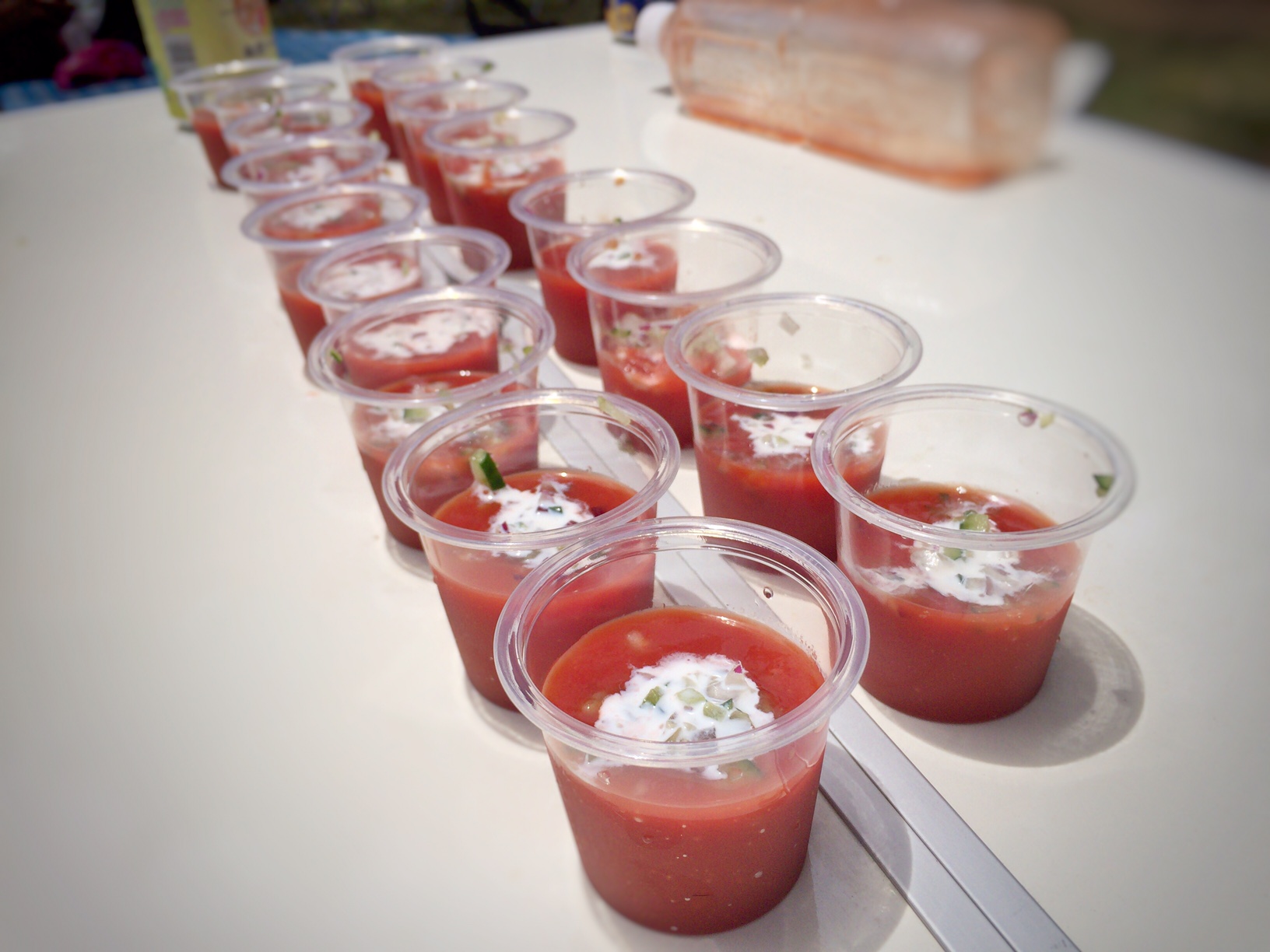 まずはソッコーで冷製ガスパチョをサーブ