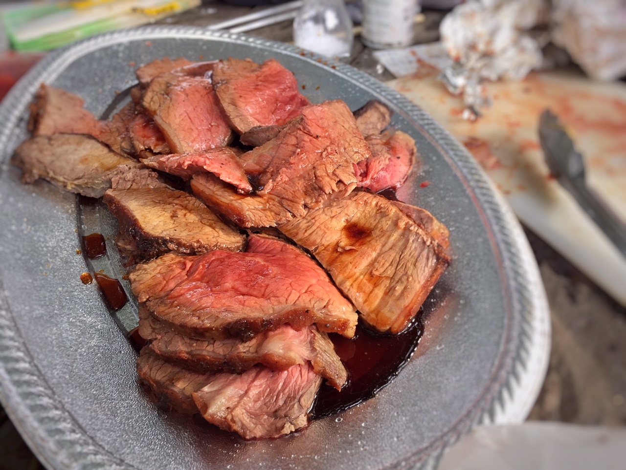 ダッチオーブンでじっくりことこと加熱した、いけだ牛のローストビーフも仕上がりました!