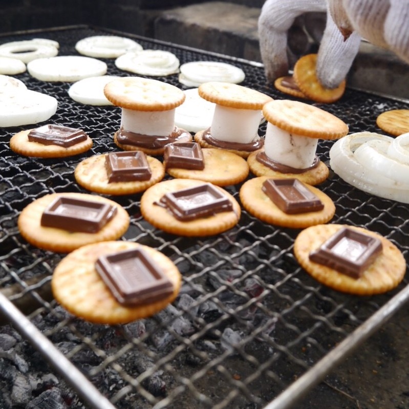 デザートは焼マシュマロをチョコを乗せたリッツでサンドしたチョコマシュマロサンド♪