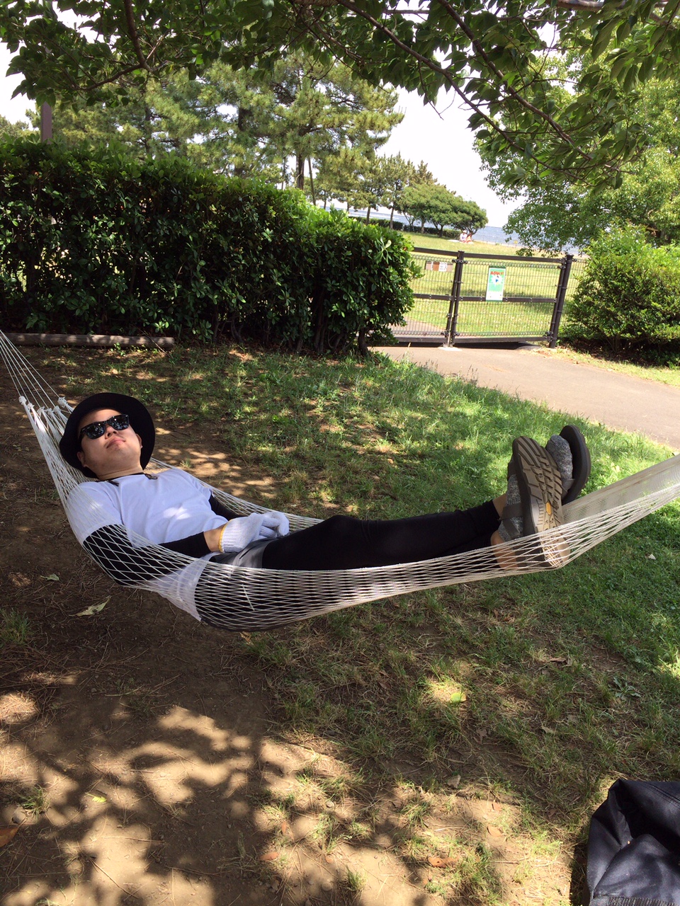 自前のハンモックにて