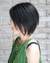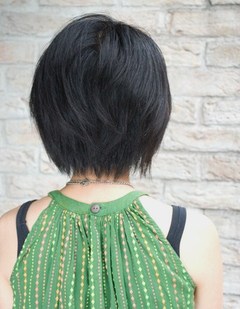 あご下ラインのレングスで、前下がりのグラボブ。広がる髪質なので、クセを弱めて軽めな仕上がりに